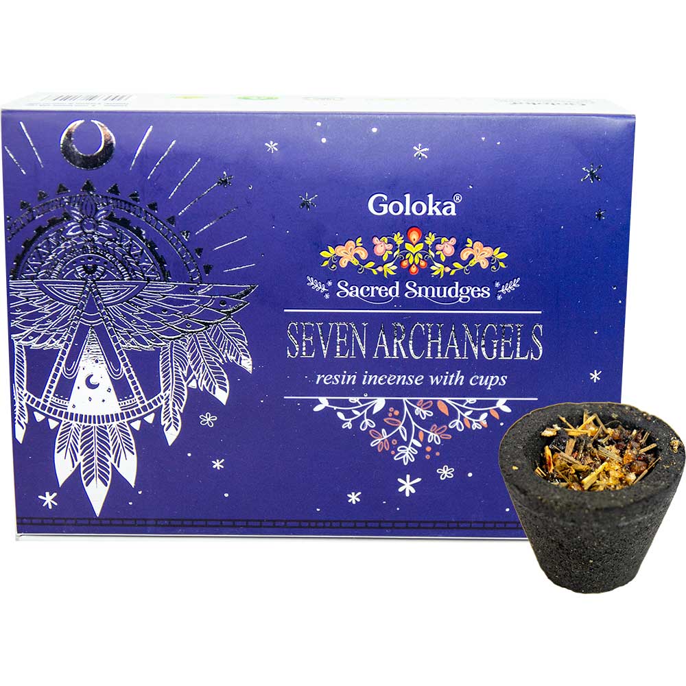Invite divine guidance and protection into your space with Seven Archangels smudge cups. Each self-contained cup combines sacred resins and botanicals with charcoal, making it easy to light and enjoy. Inspired by the energies of the Archangels, this blend promotes spiritual connection and peace. Perfect for prayer, meditation, or quiet reflection.