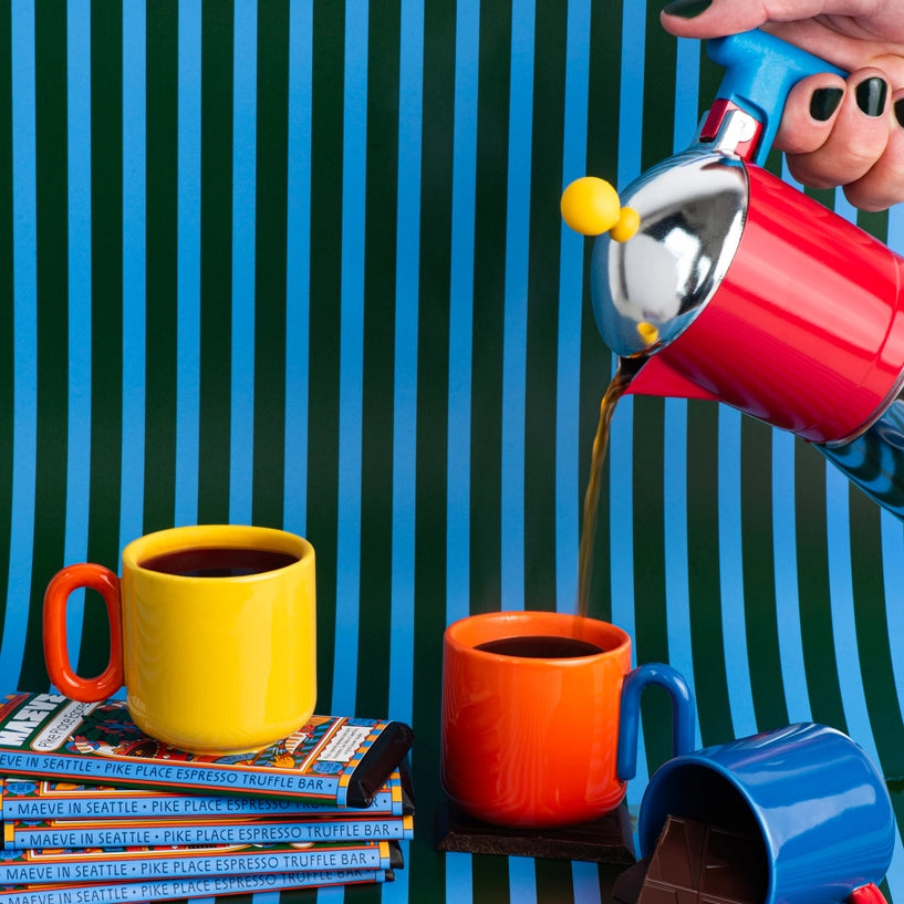 A Seattle tradition and a must-have favorite. This dreamy dark chocolate is infused with decaffeinated, deep roasted and fine ground espresso. The perfect way to start your morning, or a sweet pick-me-up in the middle of a long day, this truffle bar is just what you need to satiate your chocolate fix and perk up your tastebuds. The coffee is ground and roasted at Joe's Garage, a local roaster less than 2 miles from our factory, so you know it's the freshest cup... or bar of coffee you've ever had.