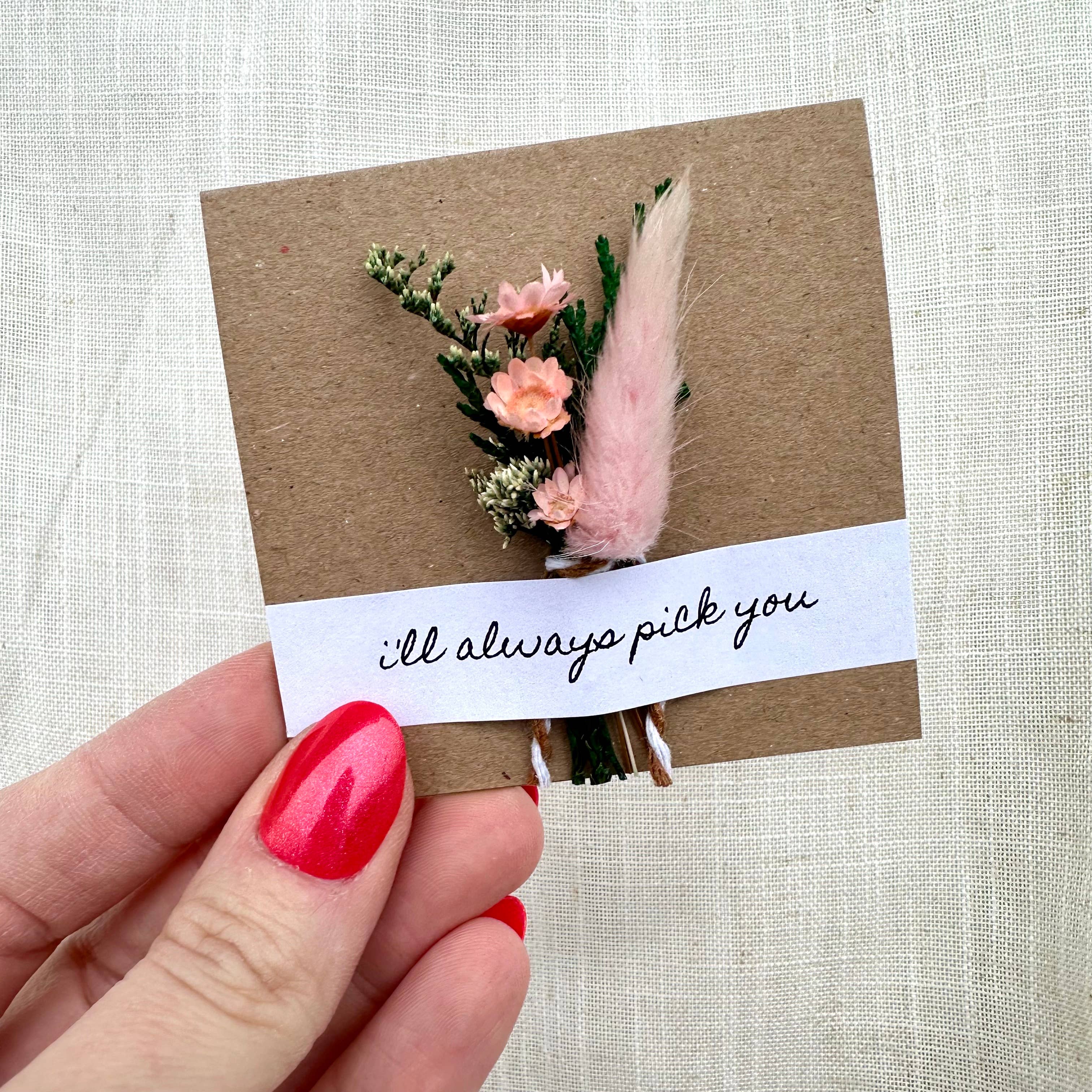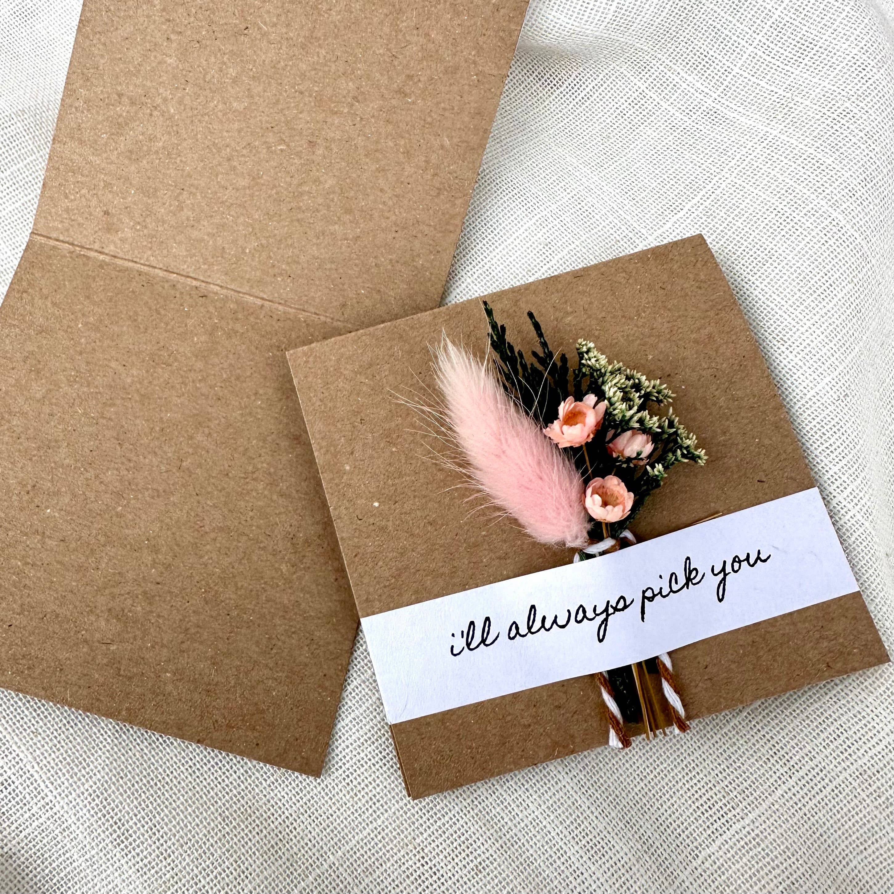 I'll Always Pick You - The sweetest message for your sweetie. These fabulously unique cards come with a little dried flower bouquet attached.