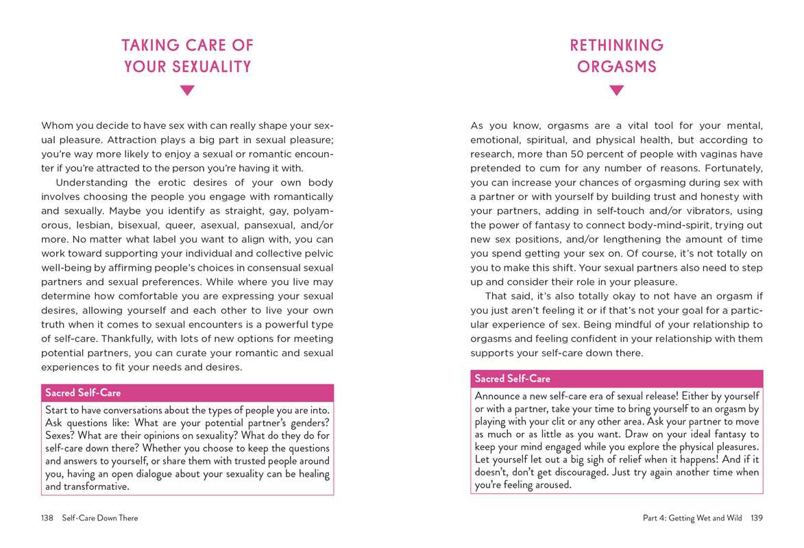 Covering everything from everyday cleanliness to internal and external safe health advice as well as tips regarding the groom-or-not-to-groom debate and sex-friendly good habits to practice, Self-Care Down There will help you keep your private parts in tip-top shape while expressing the true you!